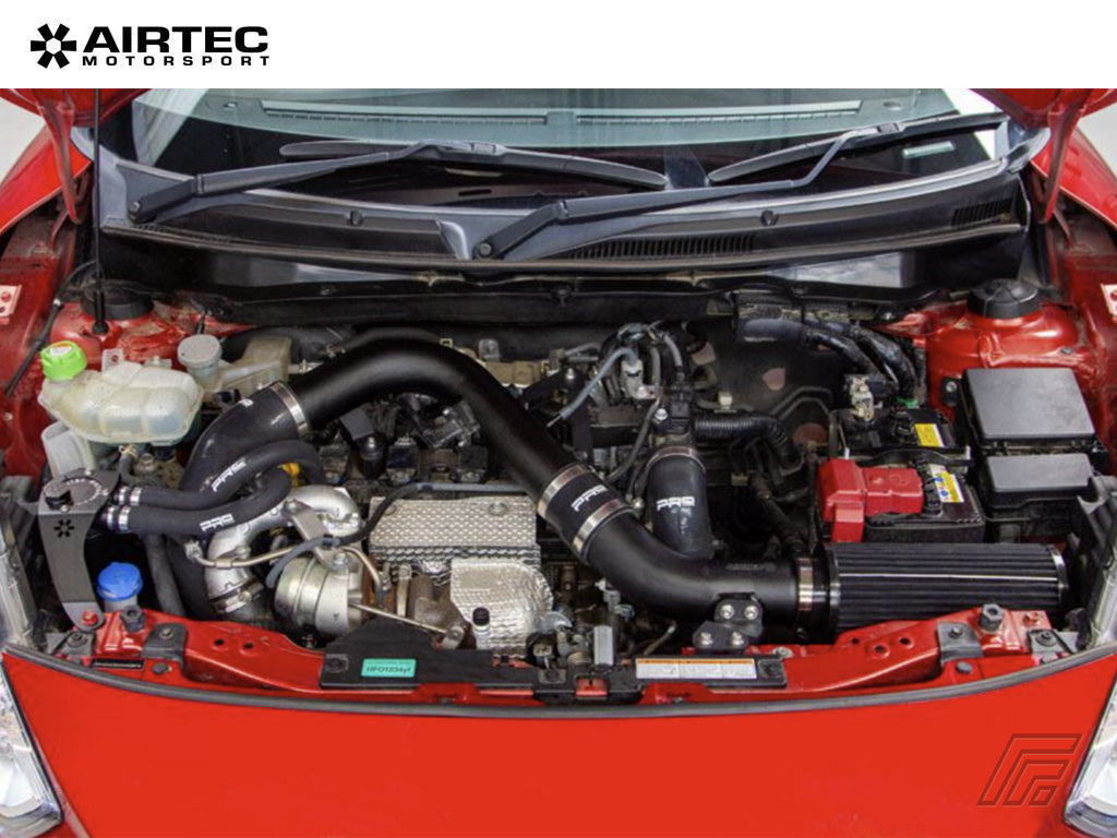 This freer-flowing induction kit replaces the car’s original air box and restrictive intake set up. It features a large, cotton AIRTEC Motorsport filter that significantly improves the car’s breathing by increasing the amount of air it can take in, therefore increasing power, performance and sound, thanks to a louder induction note and improved engine and turbo sound.
